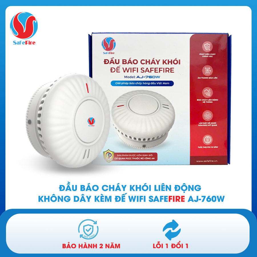 Đầu báo cháy khói liên động không dây kèm đế Wifi SafeFire AJ-760W là một thiết bị thông minh, tiện ích và hiệu quả trong việc cảnh báo cháy sớm. Sản phẩm sử dụng công nghệ cảm biến khói tiên tiến, kết nối Wifi thông minh và cho phép quản lý từ xa qua ứng dụng di động.